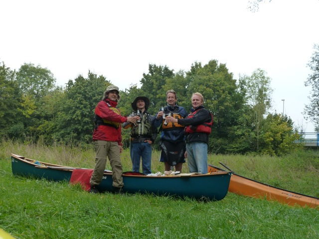 Einmal den neu (gebraucht) erworbenen Mad River Guide ...ein Solocanadier der auf Tandem umgebaut schrecklich wackelig war. (Ist inzw. wieder eine Solo-Boot.)